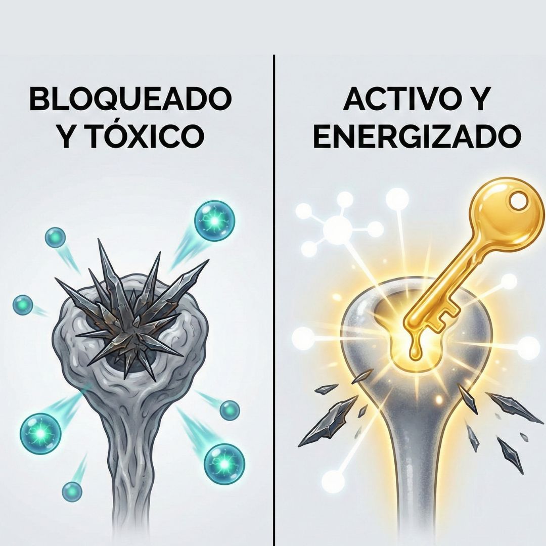 El primer ingrediente actúa como un quelante poderoso — imagina un pequeño imán que viaja por tu sangre, atrayendo y "atrapando" las partículas tóxicas de Cadmio que están asfixiando tus neuronas. Arranca el veneno de raíz.